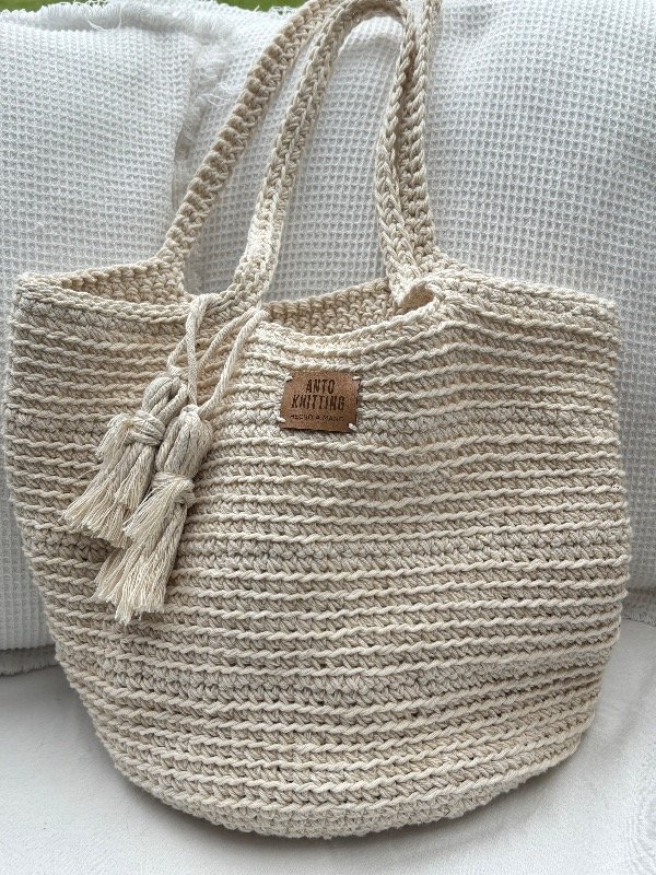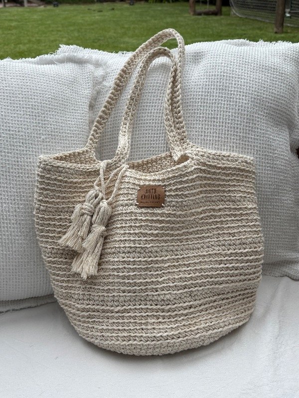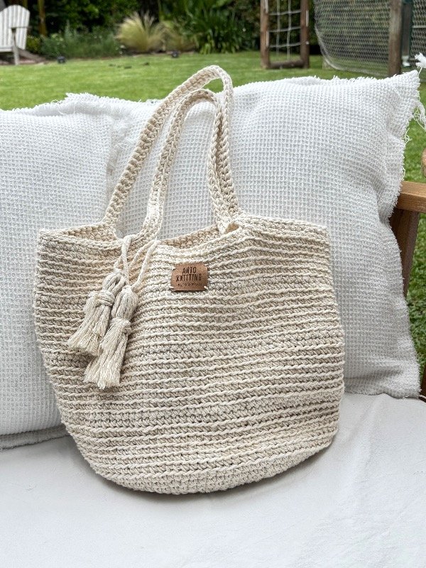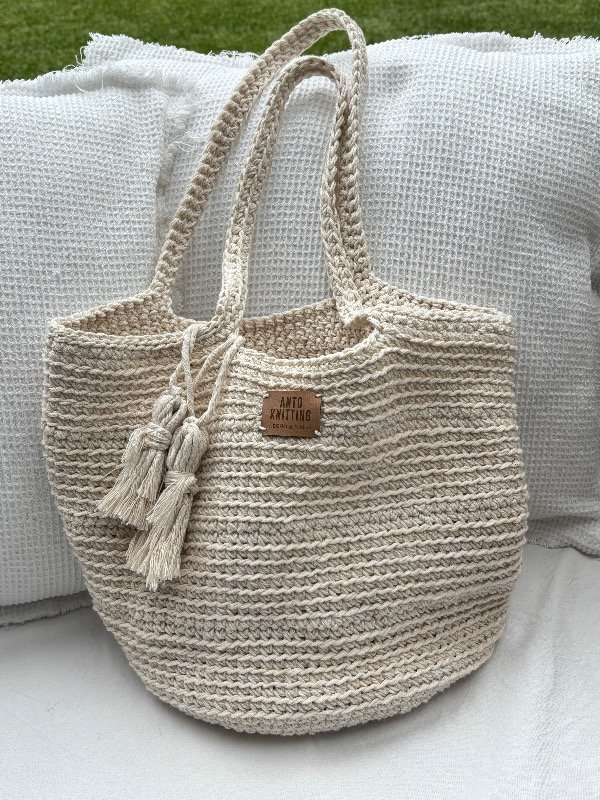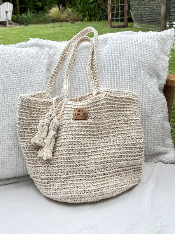 Hecho a mano con punto cerrado, tiene una textura suave pero es firme, ideal para usar tanto en la ciudad como en la playa.