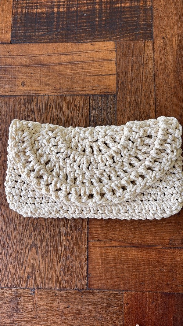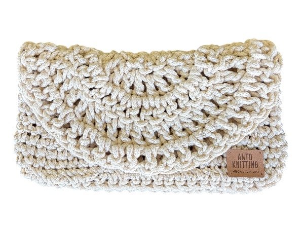 Clutch tejido en cinta gross que podes usar para cualquier momento del día o la noche debido a su diseño net y sobrio pero en un material noble y cálido.