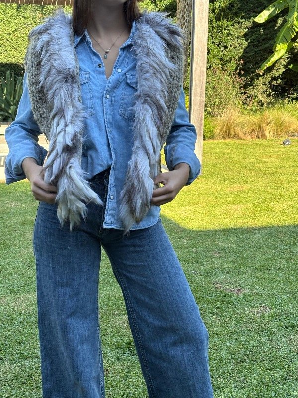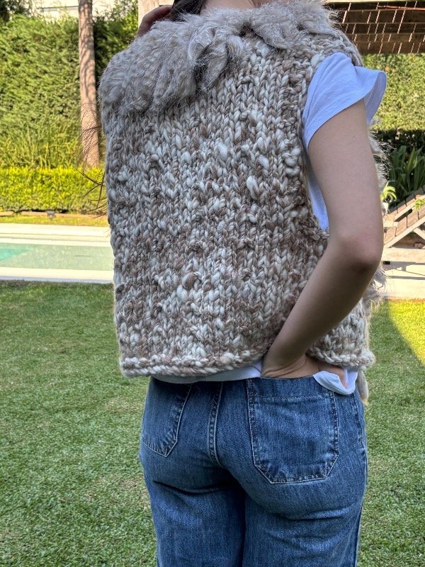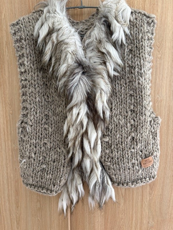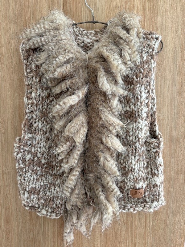 Tejido a mano con distintas lanas y detalles de piel sintética que lo hacen único 🤍